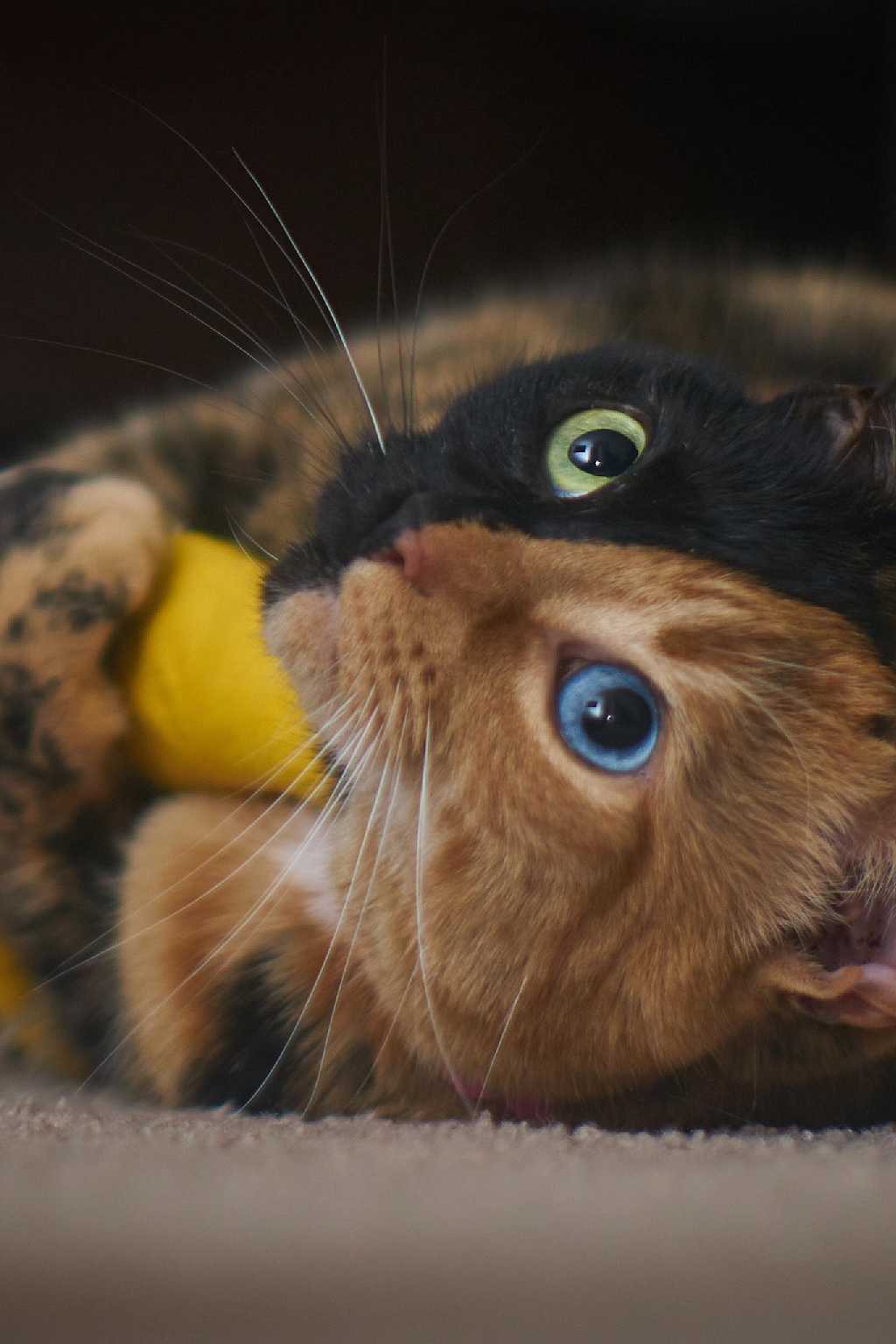 ▼5.稀有的嵌合貓,兩邊都有明顯的分明。