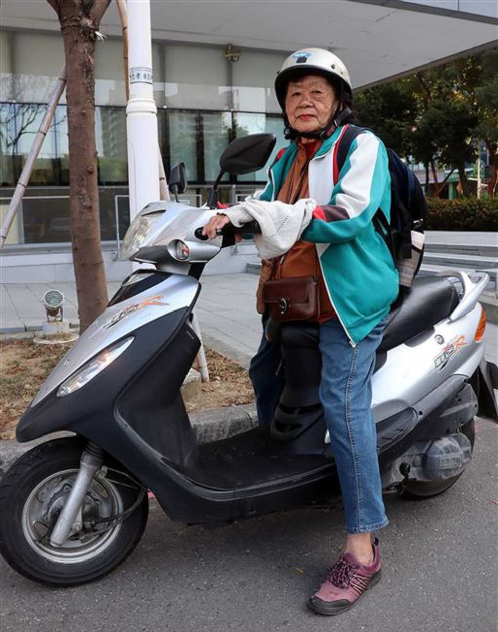 ▼玉真阿嬤只拿了一個中型背包,換洗了幾衣服就在路上騎著,說走就走的動力並沒有輸給年輕的背包客。玉真阿嬤退休後在社區任教,並在教育局擔任志工為社區服務。